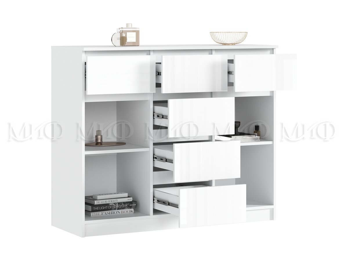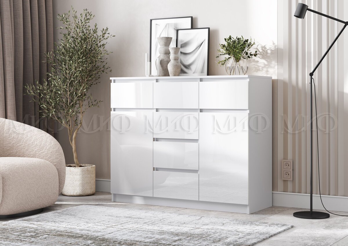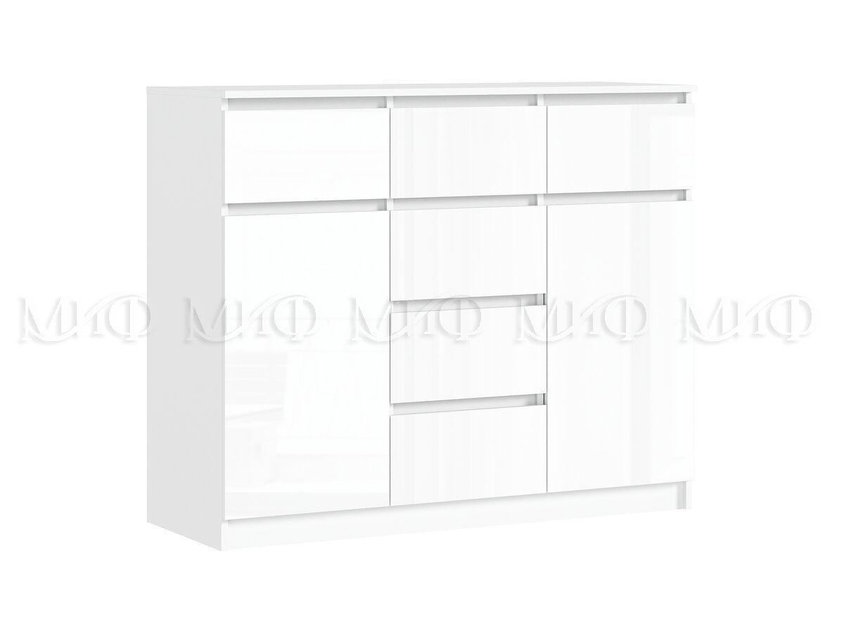 Комод 1200 (2 двери 6 ящиков) Челси Белый Глянец, Белый