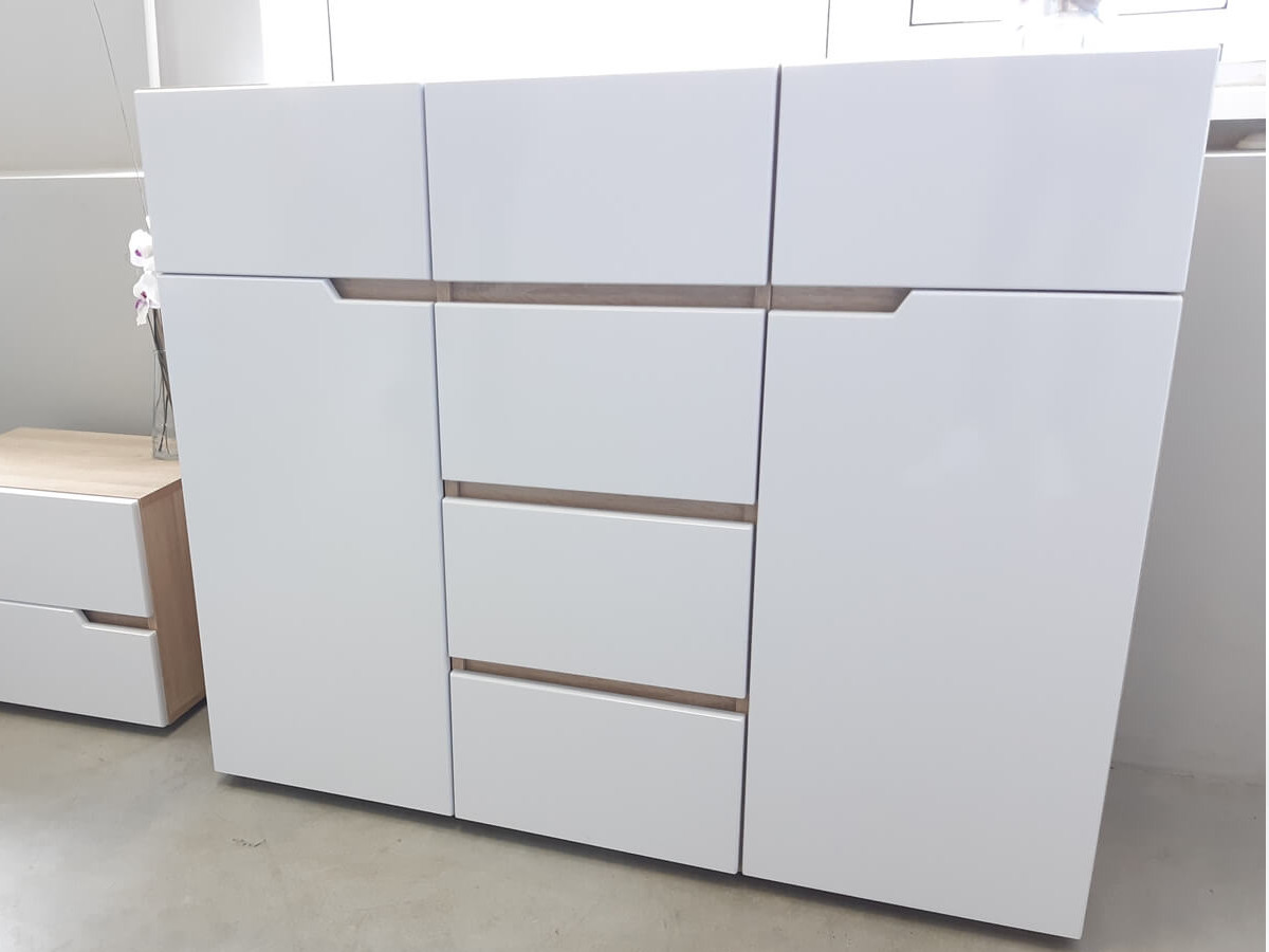 - Комод 1200 Трио Белый глянец