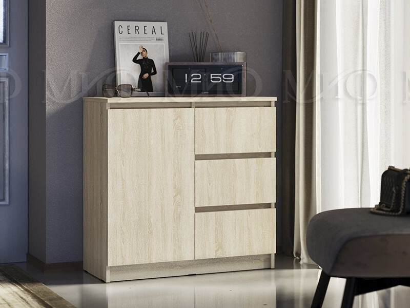 - Комод 800 3 ящика 1 дверь Челси дуб сонома