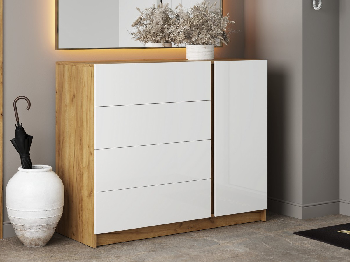 Комод КМ-001 Бостон МДФ дуб крафт золотой-глянцевая белый