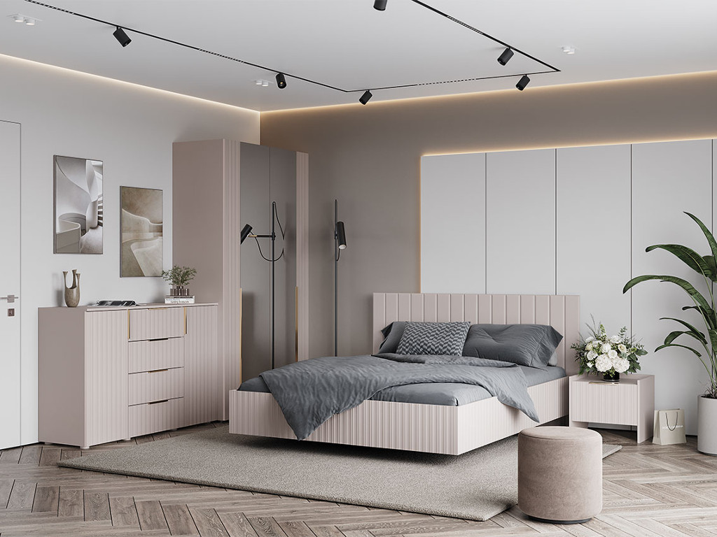 - Фасад: МДФ с фрезеровкой, плёнка ПВХ Софт Сантьяго, толщина 320-350 микрон МКМ (с праймером)
