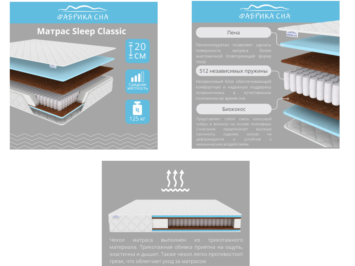 - Матрас Sleep Classic шириной 1600 мм