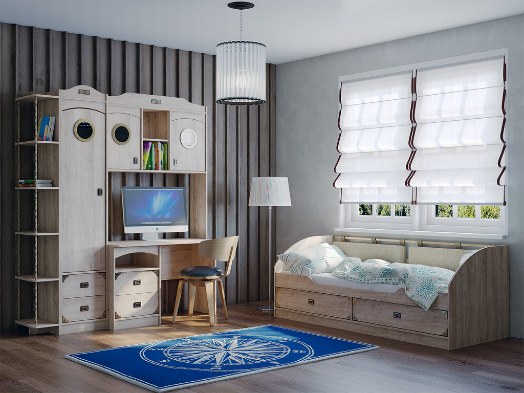 Цена за комплект: Секция №8 Окончание с канатом, Секция №7 Пенал, Секция №4 Стол, Секция №5 Надстройка, Секция №1 Кровать 1-но ярусная 800, Секция №9 (Иллюминатор) (3 шт)