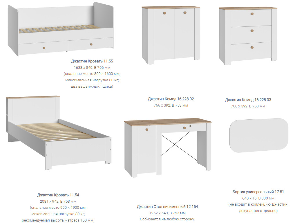 - Кровать 11.54 (2081 x 942, В 753 мм) (сп. место 90×190см; макс. нагрузка 80 кг; рекомендуемая высота матраса 150 мм) ( 43,10 кг; 0,094 м3)
