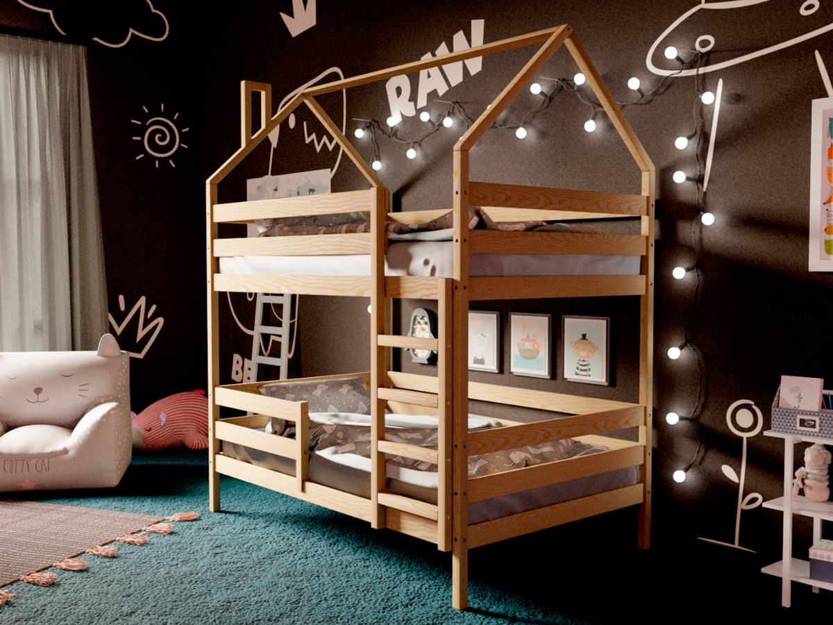 Двухъярусная кровать-домик без покраски 80х160 см