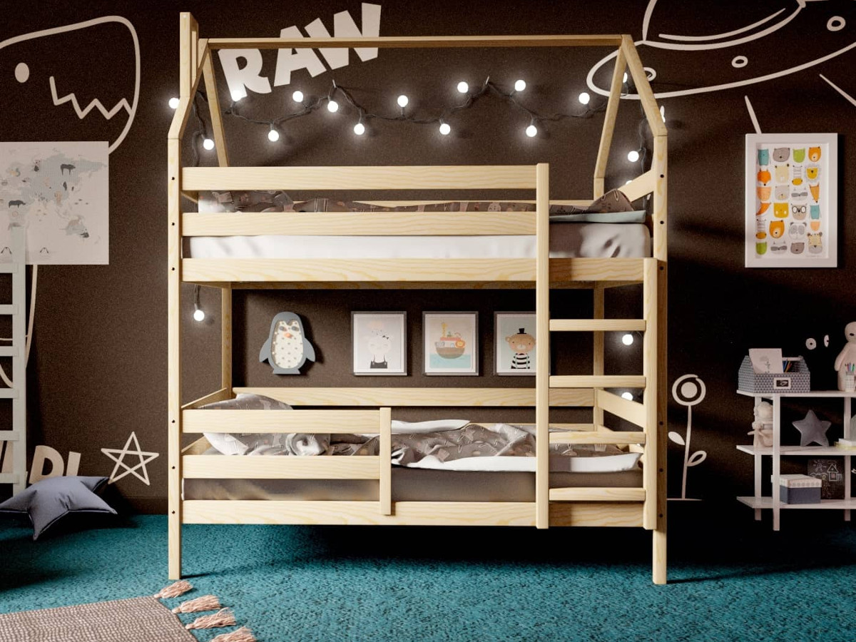 Двухъярусная кровать-домик без покраски 80х190 см