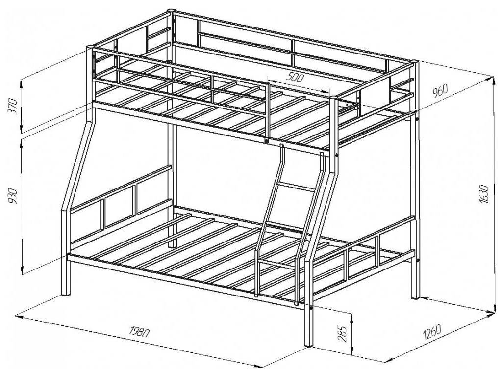 Ширина нижнего спального места: 1200х1900 мм