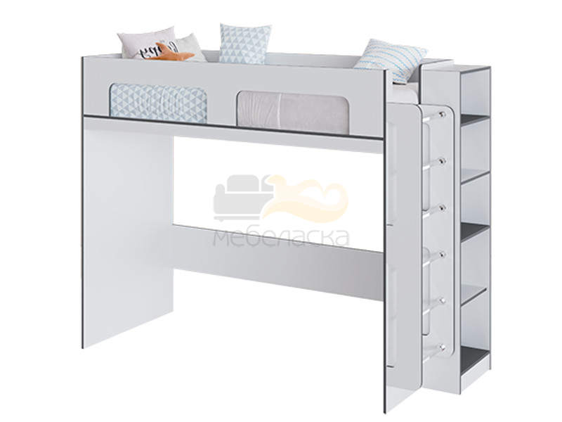 Кровать декорирована серой кромкой, фасад и корпус с тиснением "Древесные поры".