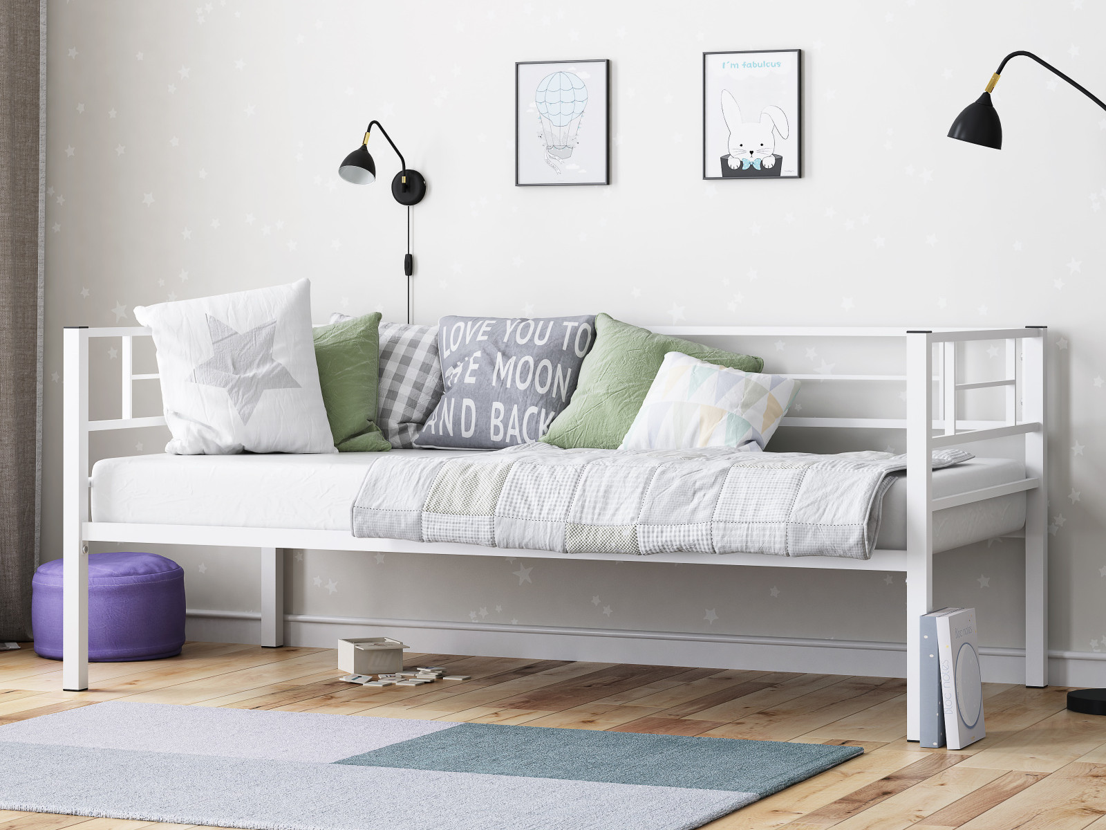 - Кровать металлическая Лорка Белый
