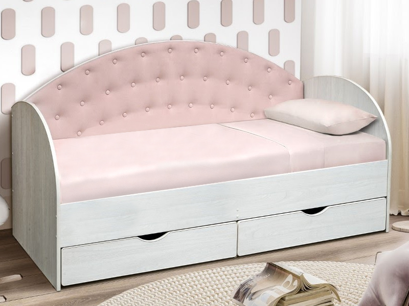 - Кровать с продольной мягкой спинкой Софа №10 розовый 800х1900