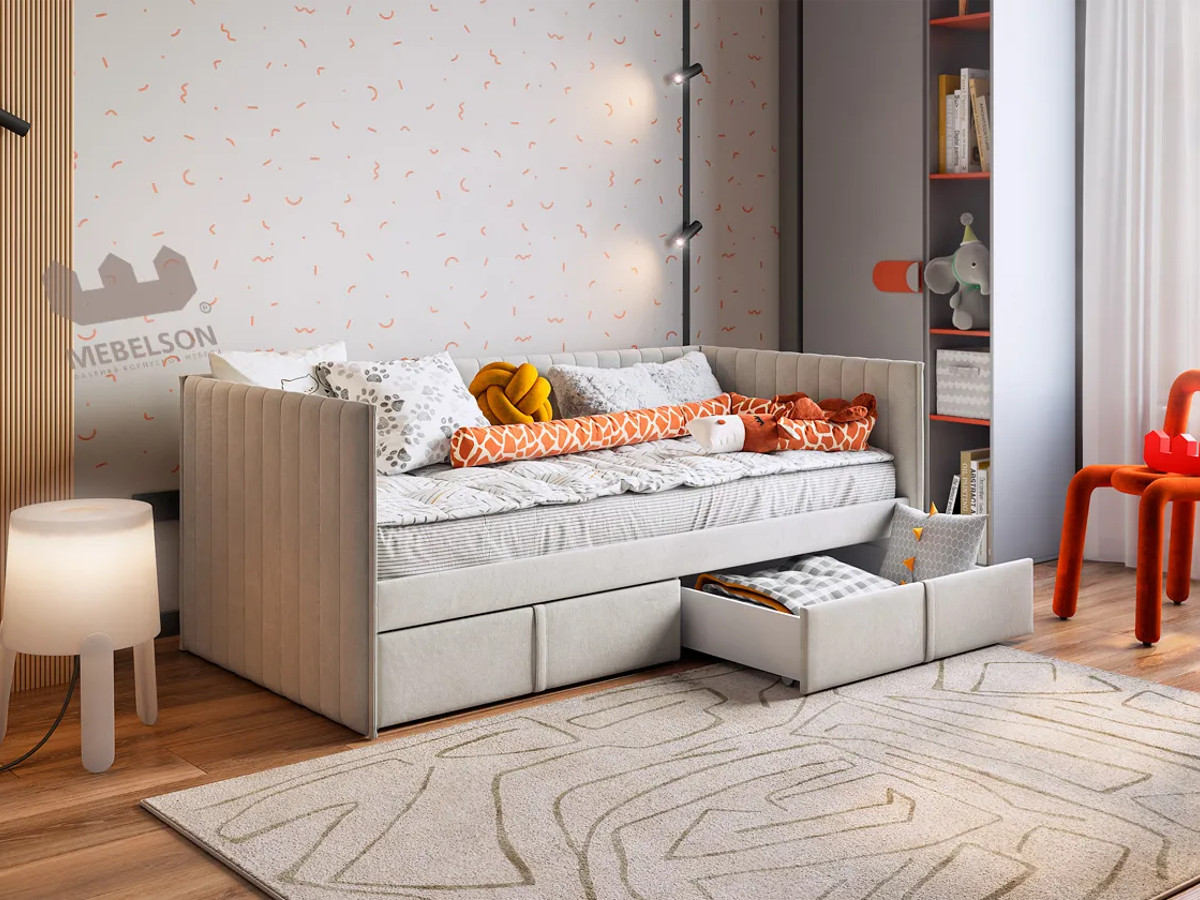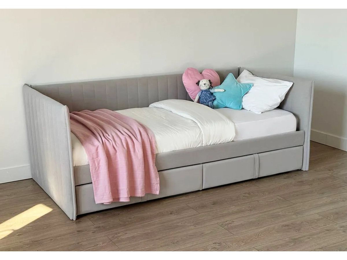 - Кровать-софа с ящиками Твикс цвет велюра галька