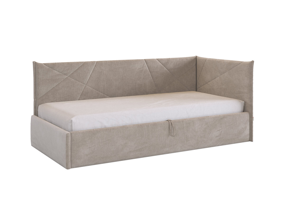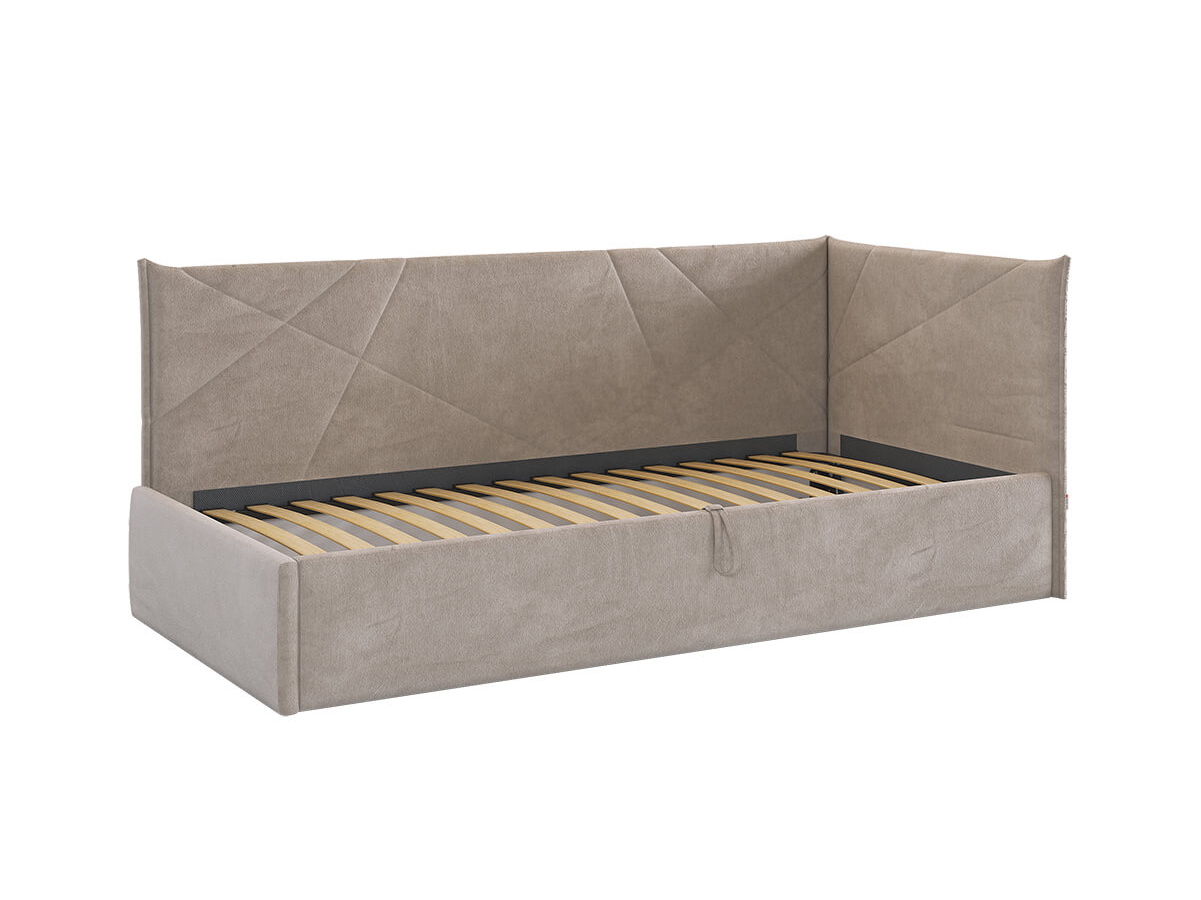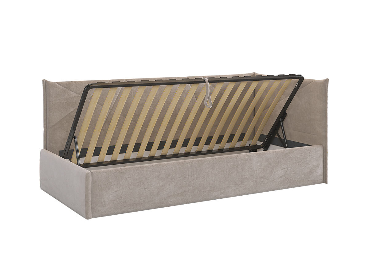 Основание подъемное входит в комплект кровати, петелька для подъема в цвет ткани на корпусе. Кровать имеет огромный ящик для хранения.