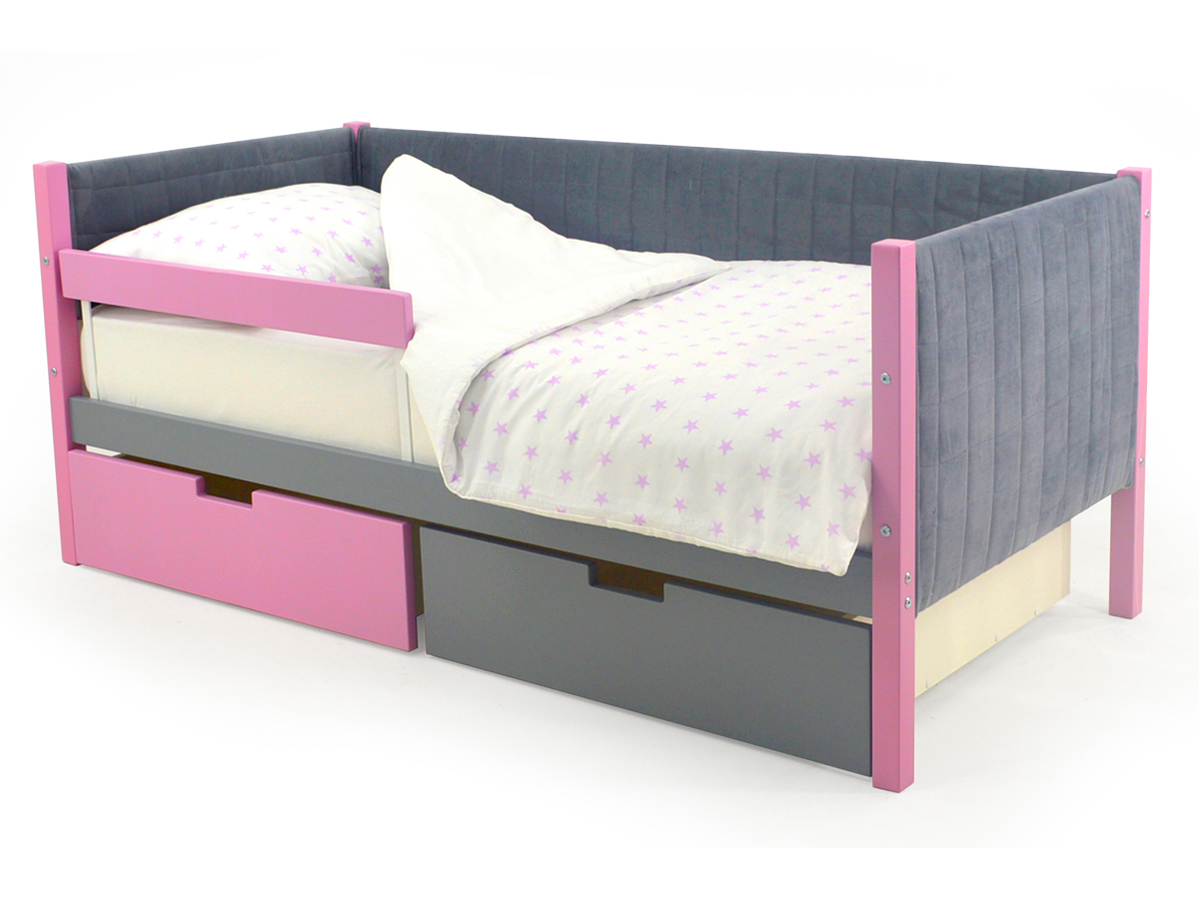 Кровать-тахта мягкая Svogen с ящиками и бортиком лаванда-графит