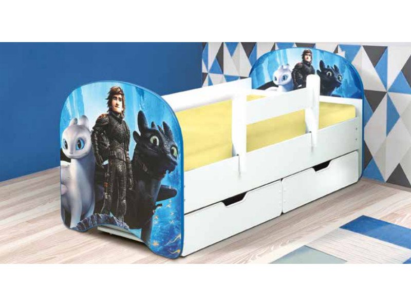 Кровать детская с фотопечатью с 2-мя ящиками Драконы