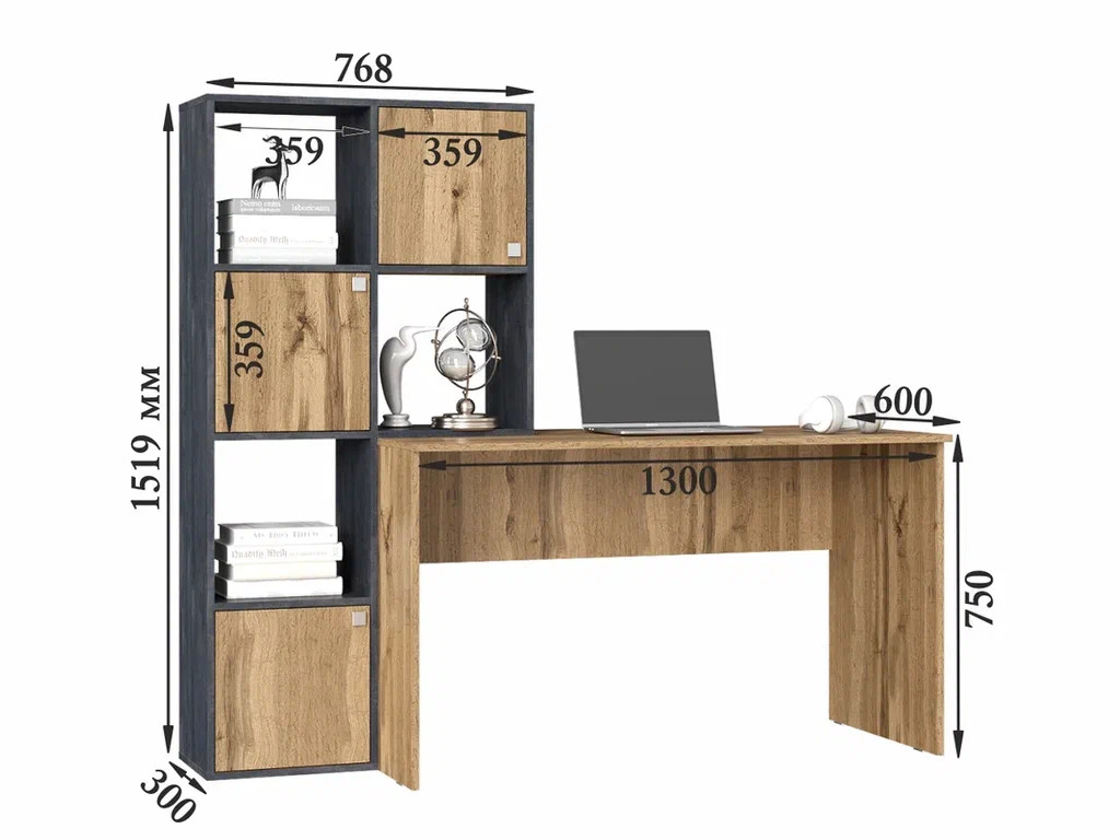 - Стол компьютерный СК Юджин дуб вотан/обсидиан