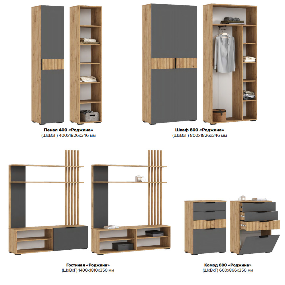 - Гостиная модульная Роджина Белый глянец, Дуб крафт