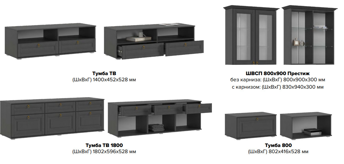 Цена за комплект: Тумба ТВ 1800, Тумба 800, ШВС800/900, ШВГ600/450 (3шт)