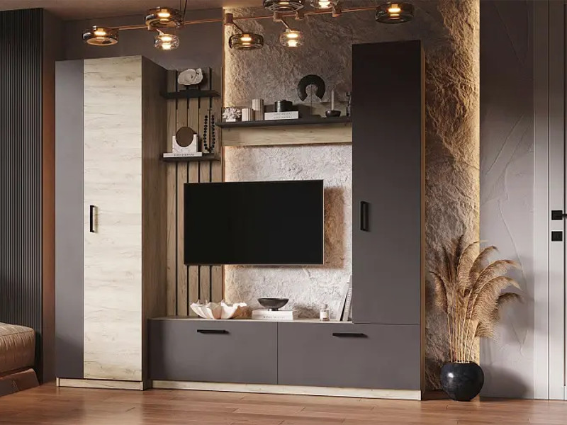 - Гостиная Рокси дуб серый/серый графит