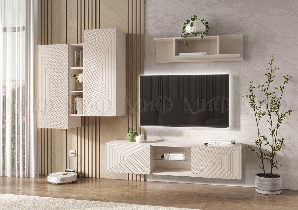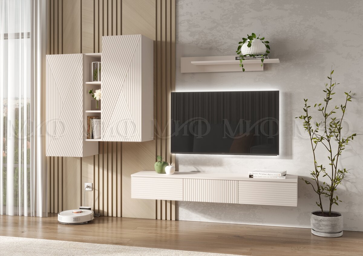 Цена за комплект: Тумба ТВ подвесная, Шкаф подвесной комбинированный, Полка навесная