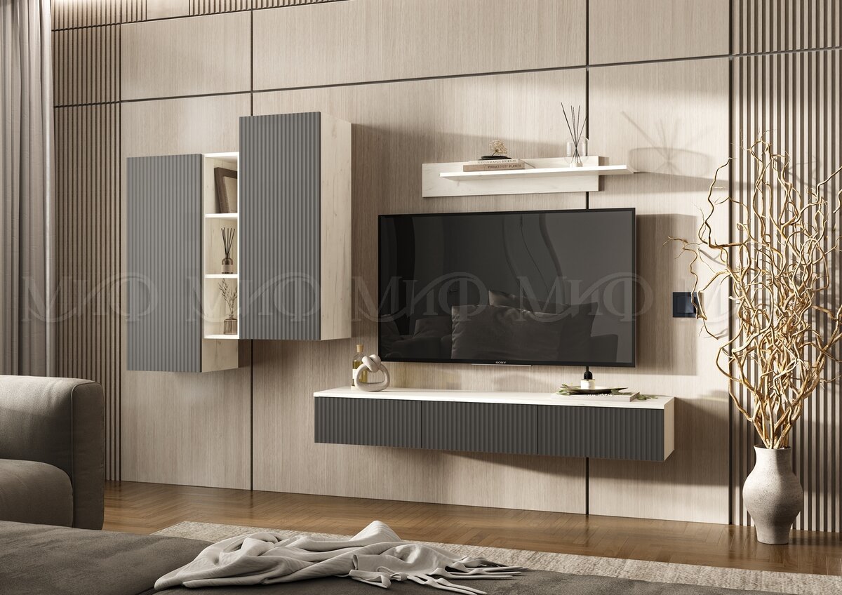 Гостиная навесная Оскар Графит, Дуб Крафт Белый