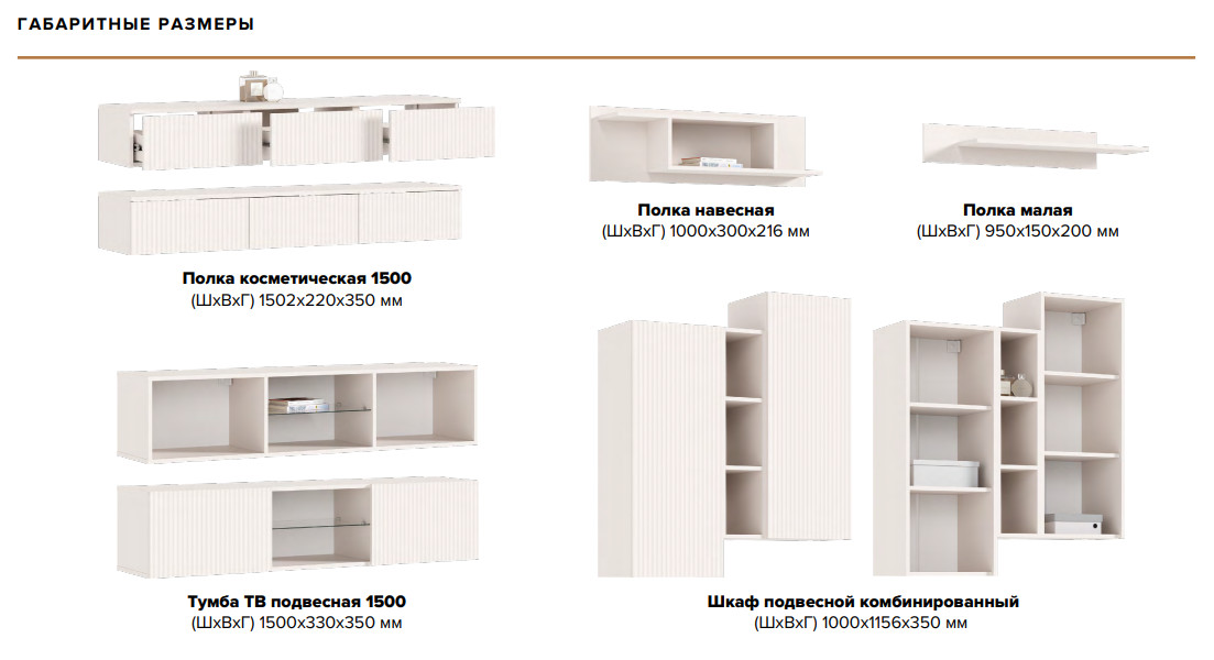Цена за комплект: Полка косметическая, Шкаф подвесной комбинированный, Полка малая