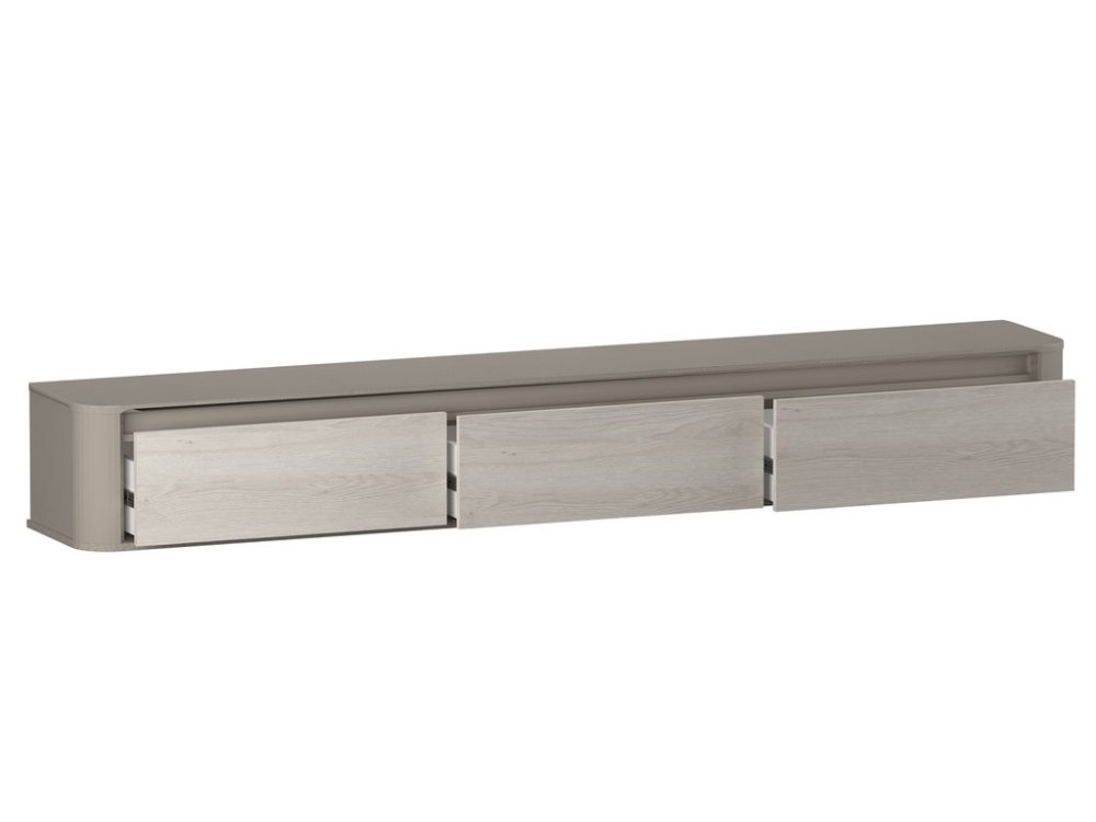 Наполнение тумбы - 3 выдвижных ящика с доводчиками. Шариковые направляющие надежно удерживают ящики при открывании.