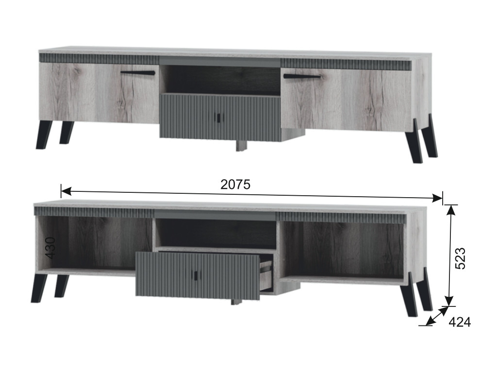 Тумба ТВ №1 с ножками Ольга 3 дуб коми