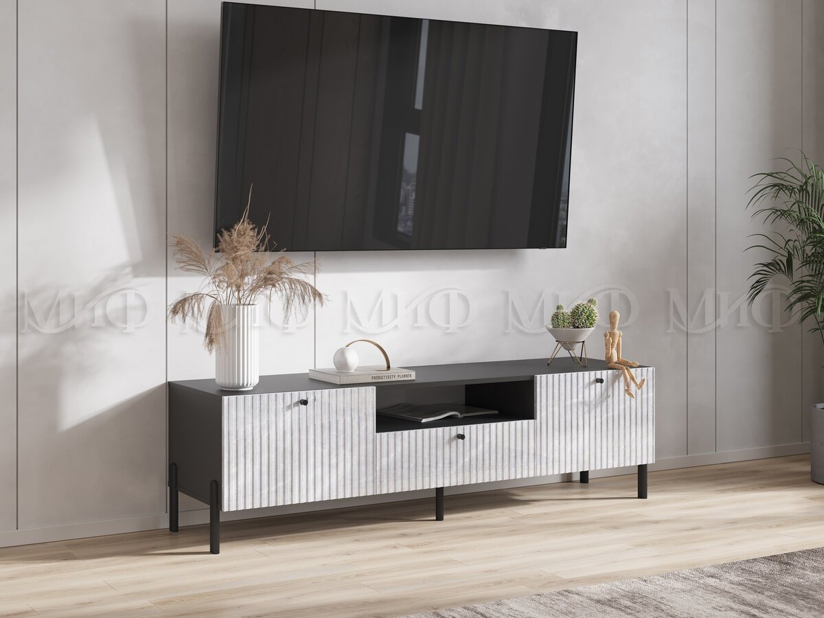 - Тумба ТВ малая (металл) Оливия Мрамор Глянец, Графит
