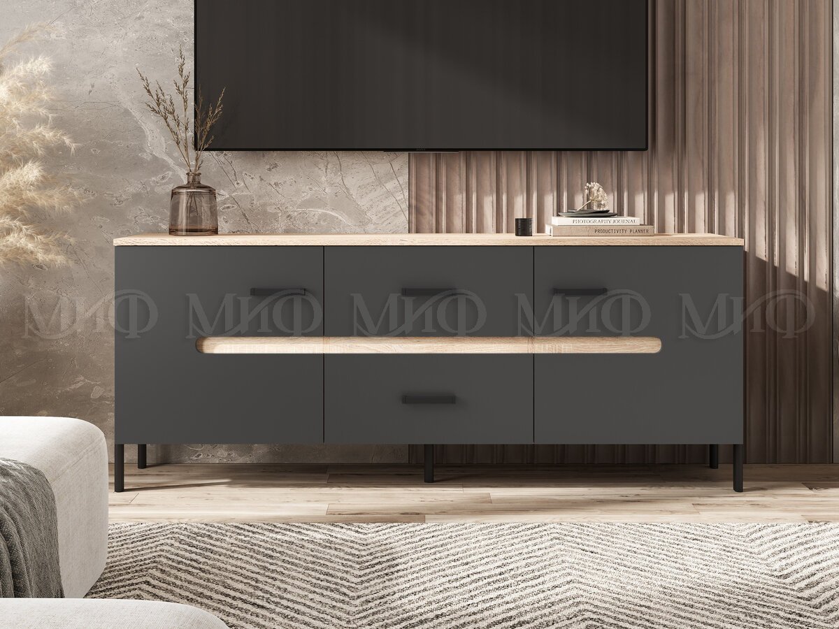 - Тумба ТВ (металл) Ким Графит Софт, Дуб Сонома