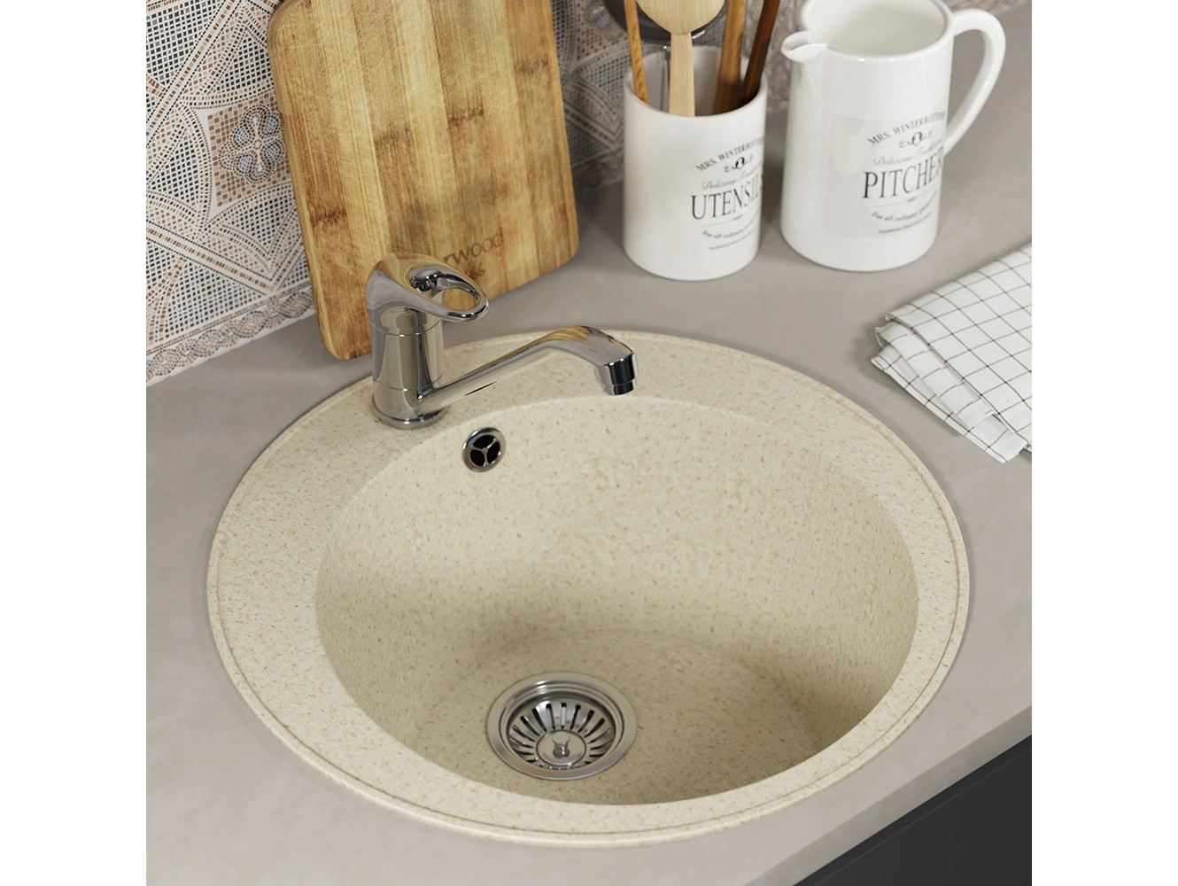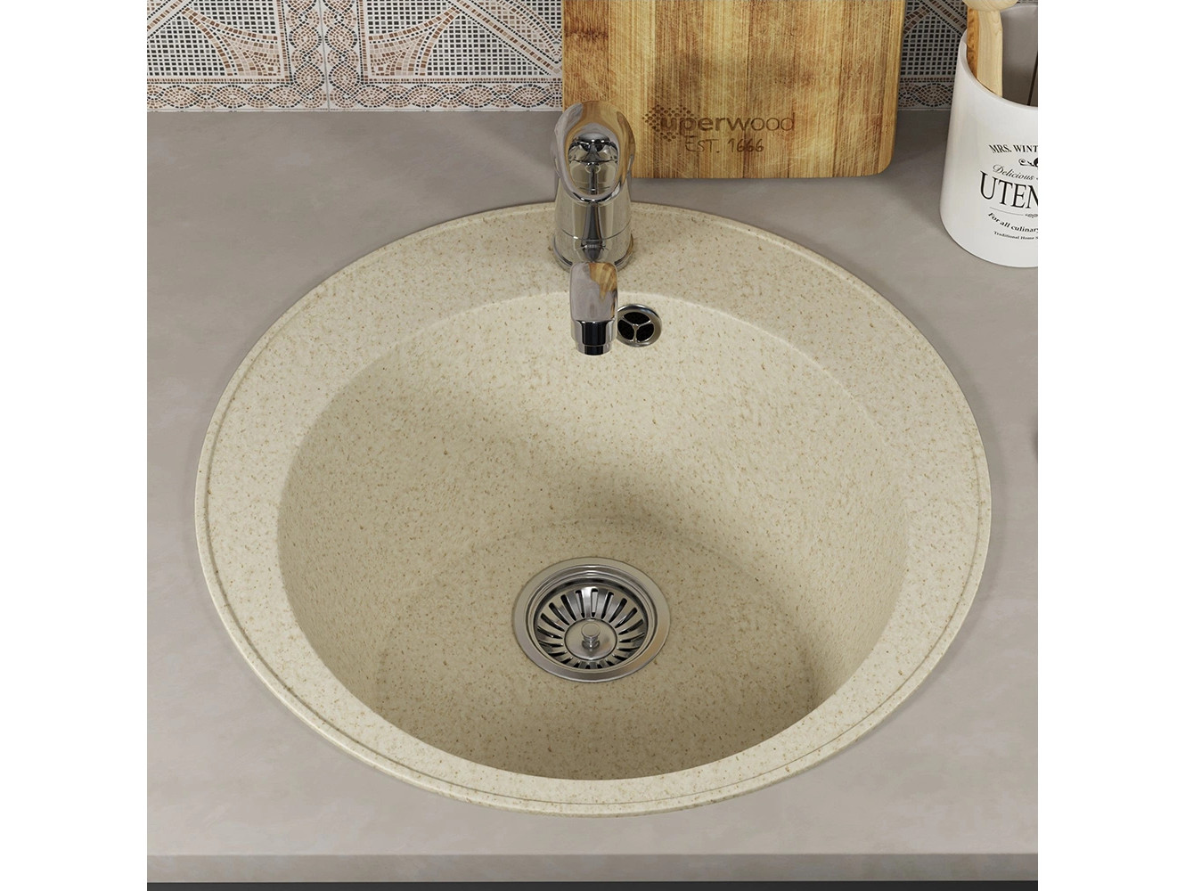 - Кухонная мойка Uperwood ECON UPD-405-002 бежевая матовая