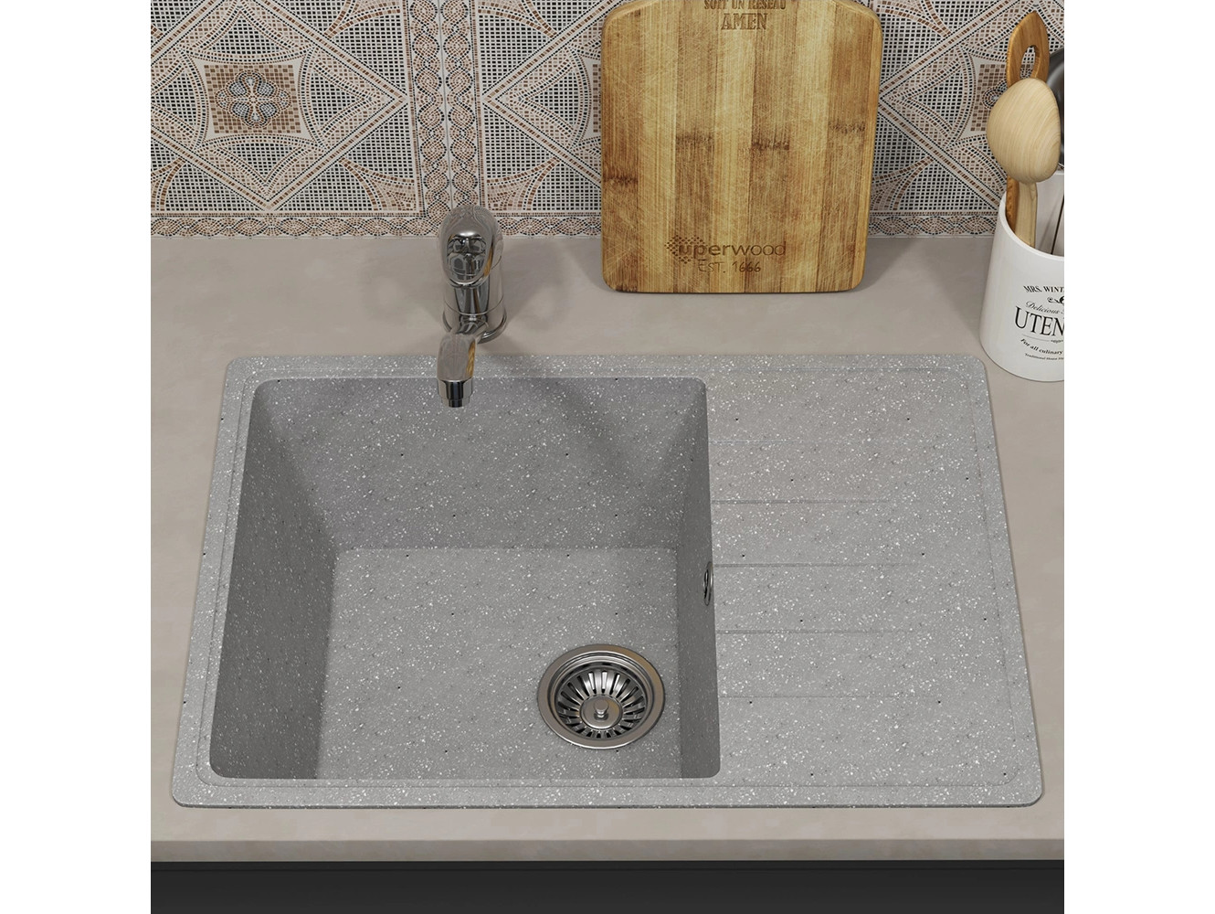 - Кухонная мойка Uperwood ECON UPD-506-003 серая матовая