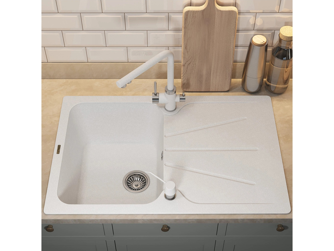 - Кухонная мойка Uperwood Quartz UPD-04-01 белая матовая