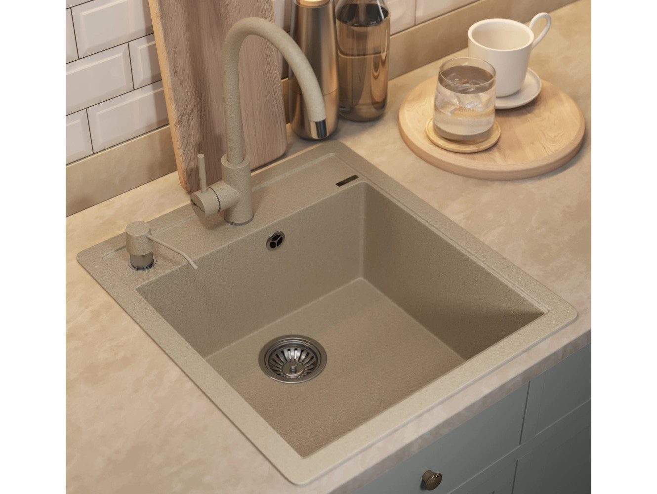 - Кухонная мойка Uperwood Quartz UPD-07-02 бежевая матовая