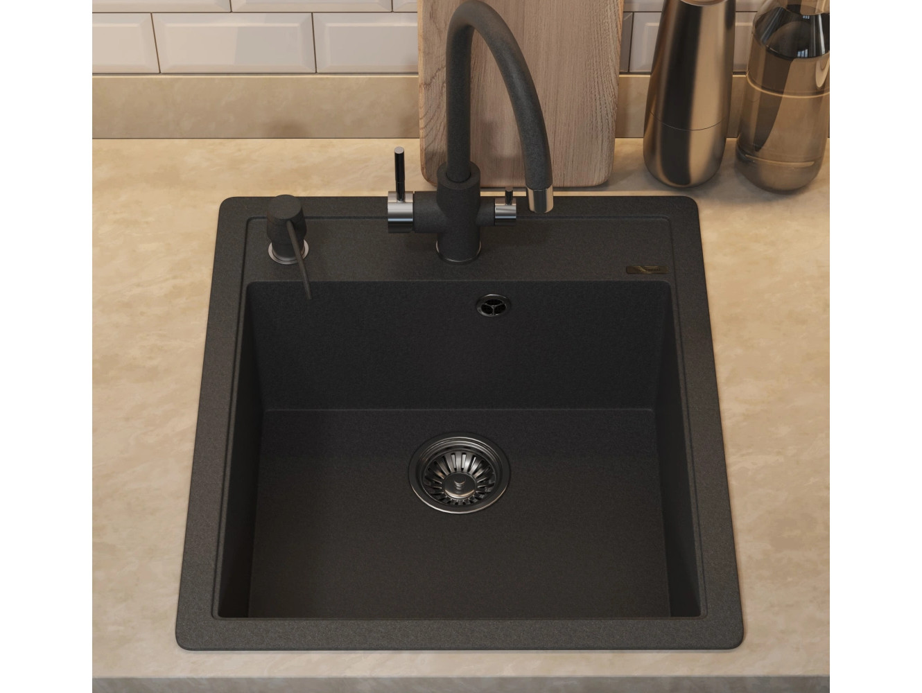 - Кухонная мойка Uperwood Quartz UPD-07-04 черная матовая