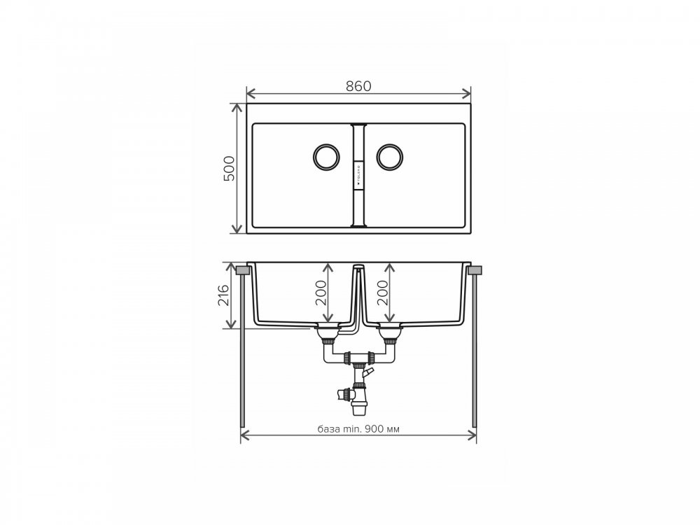 Длина мойки, мм: 860
