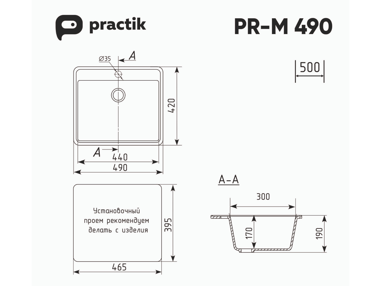 Установочный проем: 465 х 395 мм