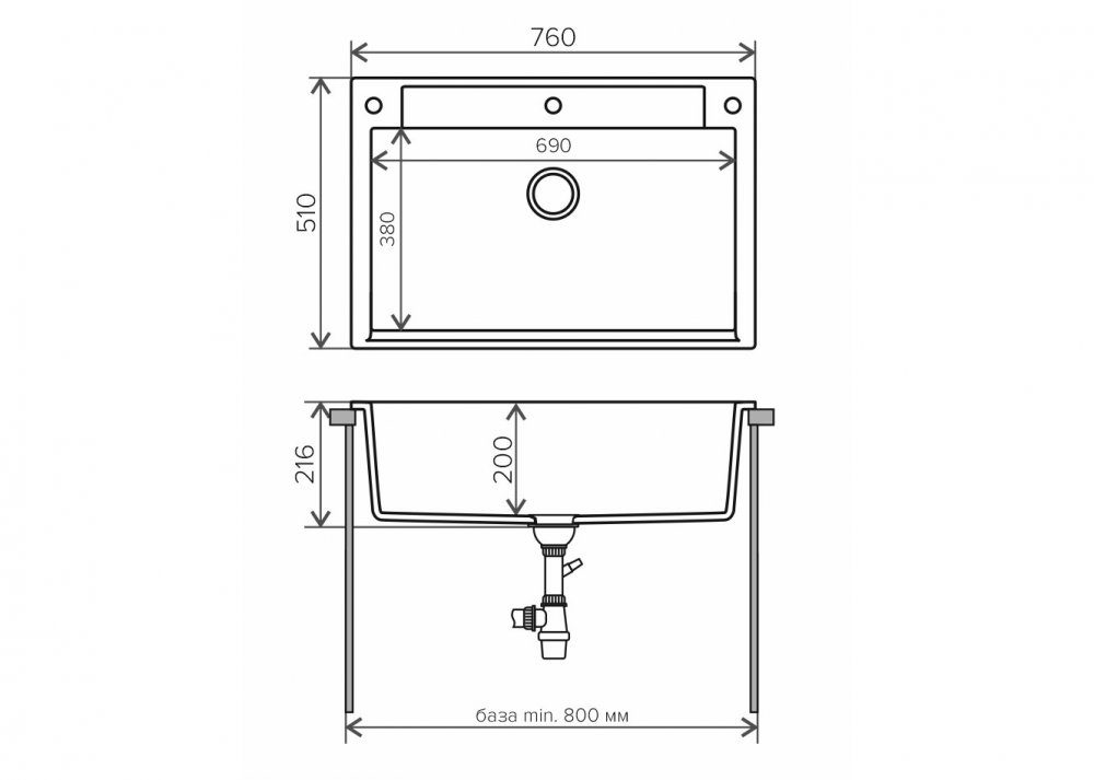 - Мойка Polygran Argo-760 Белый хлопок 36
