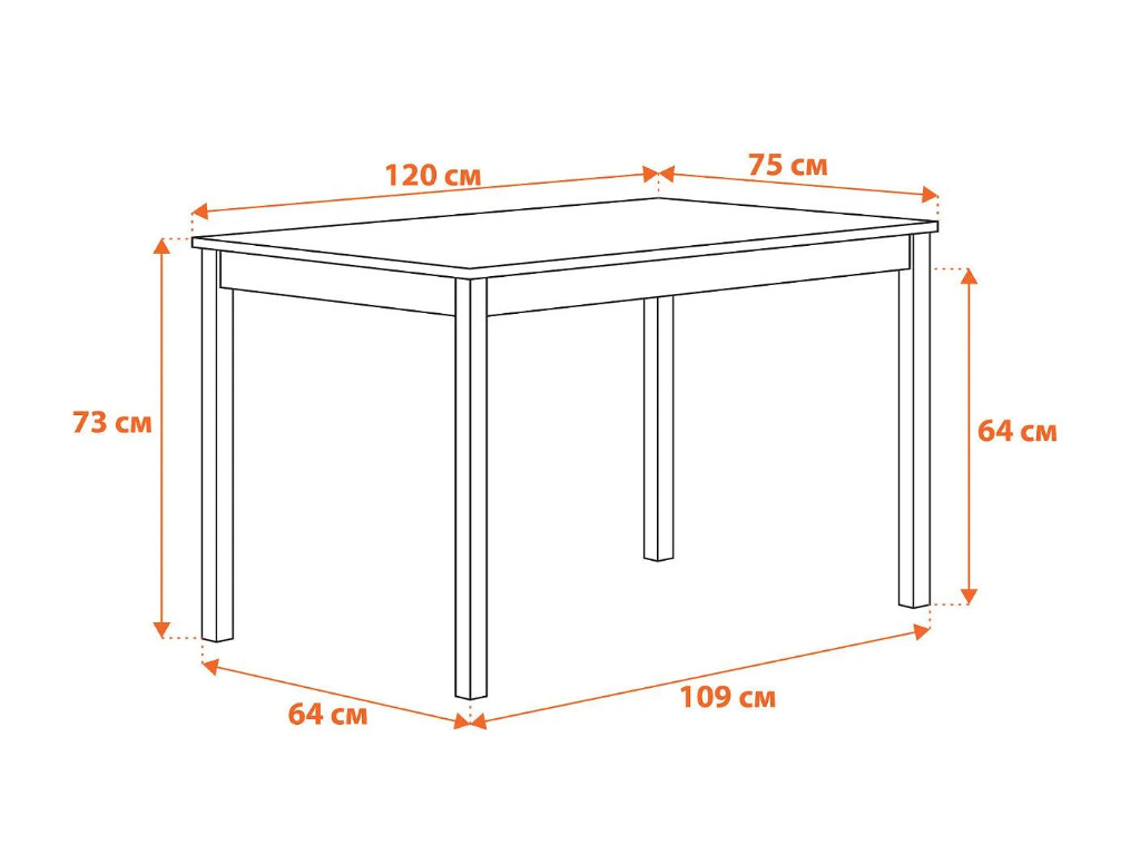 - стол: 120х75х73 см