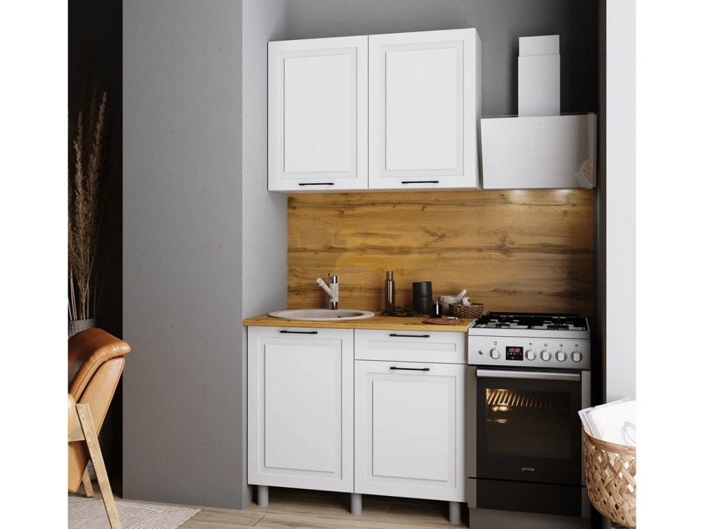 - Кухня Аликанте 1000 МДФ Белый снег без столешницы