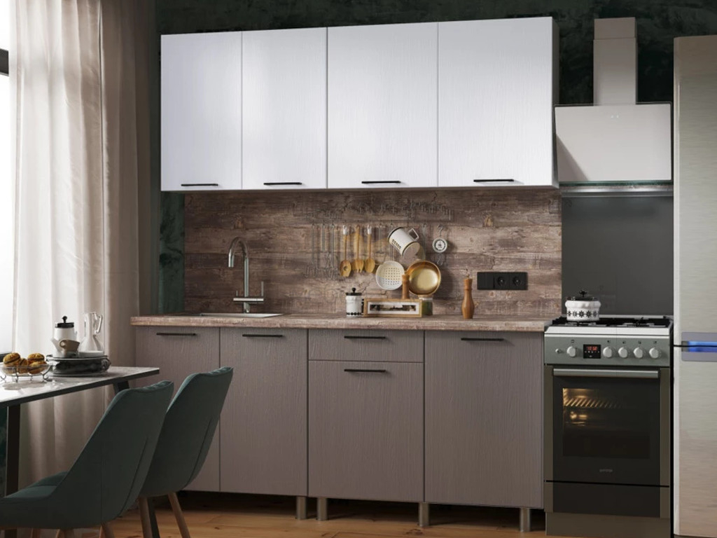 - Кухня Хилтон 1800 МДФ Клен Белый/Клен Серый без столешницы