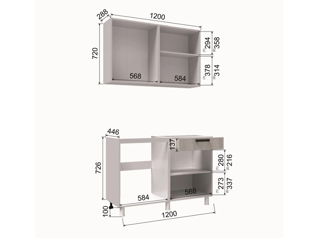 - Кухня Кальяри 1200 МДФ Холст Натуральный/Холст Грей без столешницы