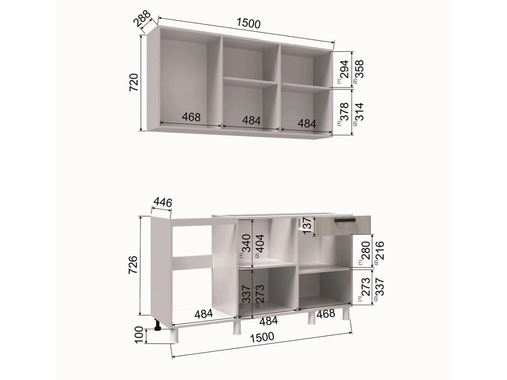 - Кухня Кальяри 1500 МДФ Холст Натуральный/Холст Грей без столешницы