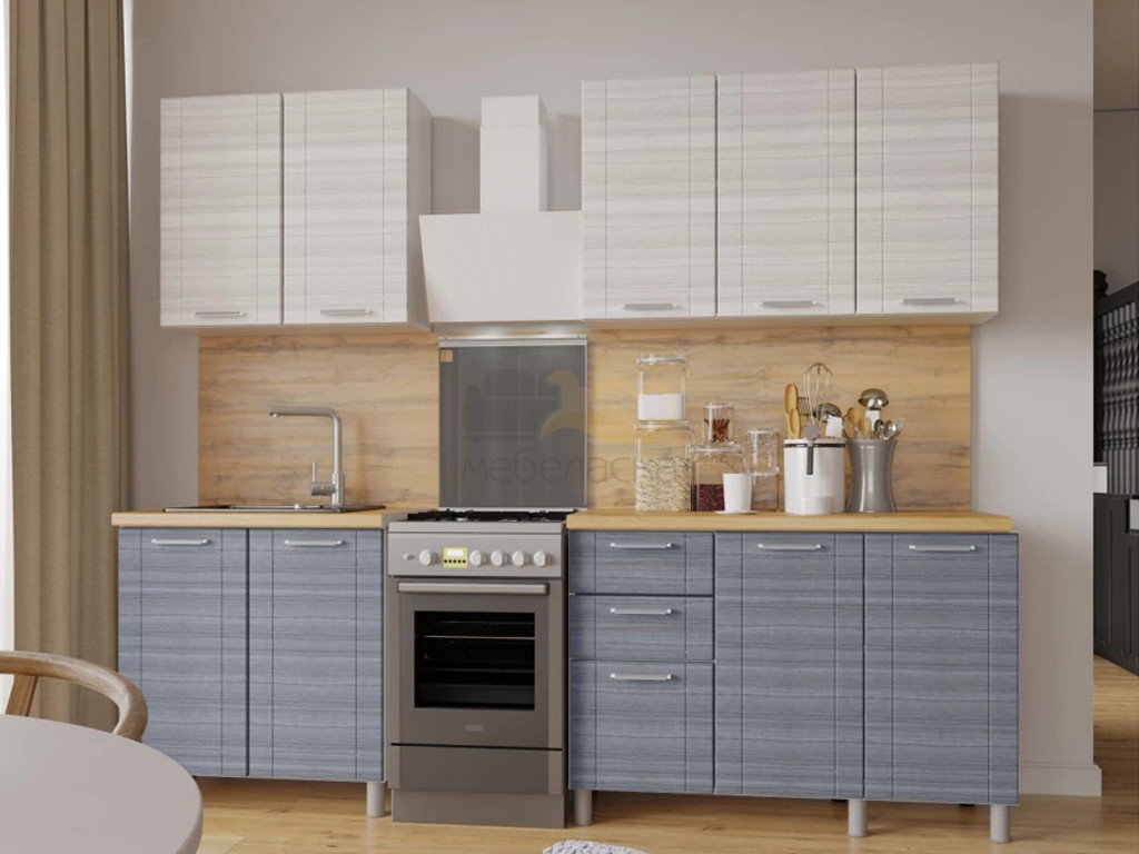 - Кухня Лига 2000 без стекла МДФ Сандал Белый/Сандал Серый без столешницы