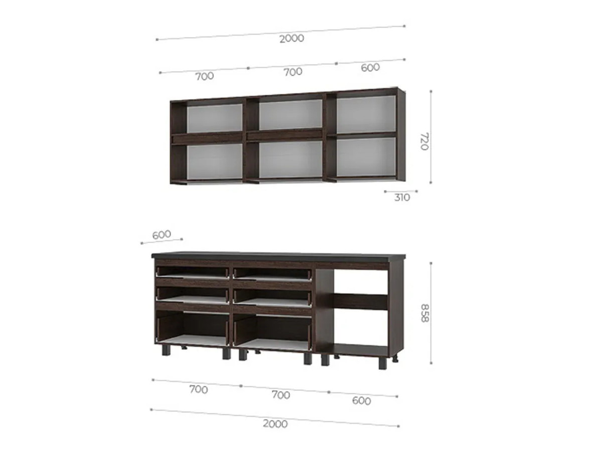 В комплект входит столешница 38 мм "Чёрный янтарь" 2000 мм.