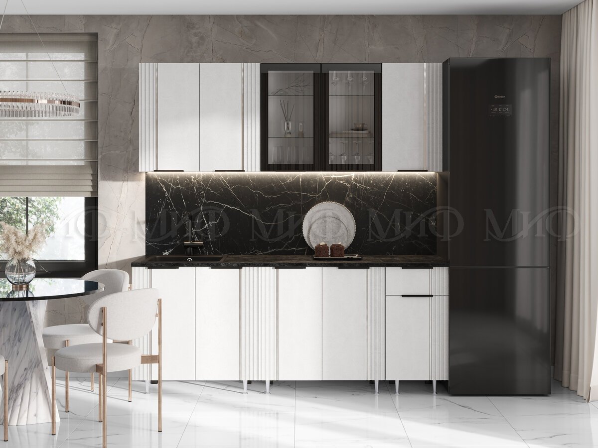 - Кухня Виктория 2000 мм Пластер Бьянко/Белый (Кастилло темный)