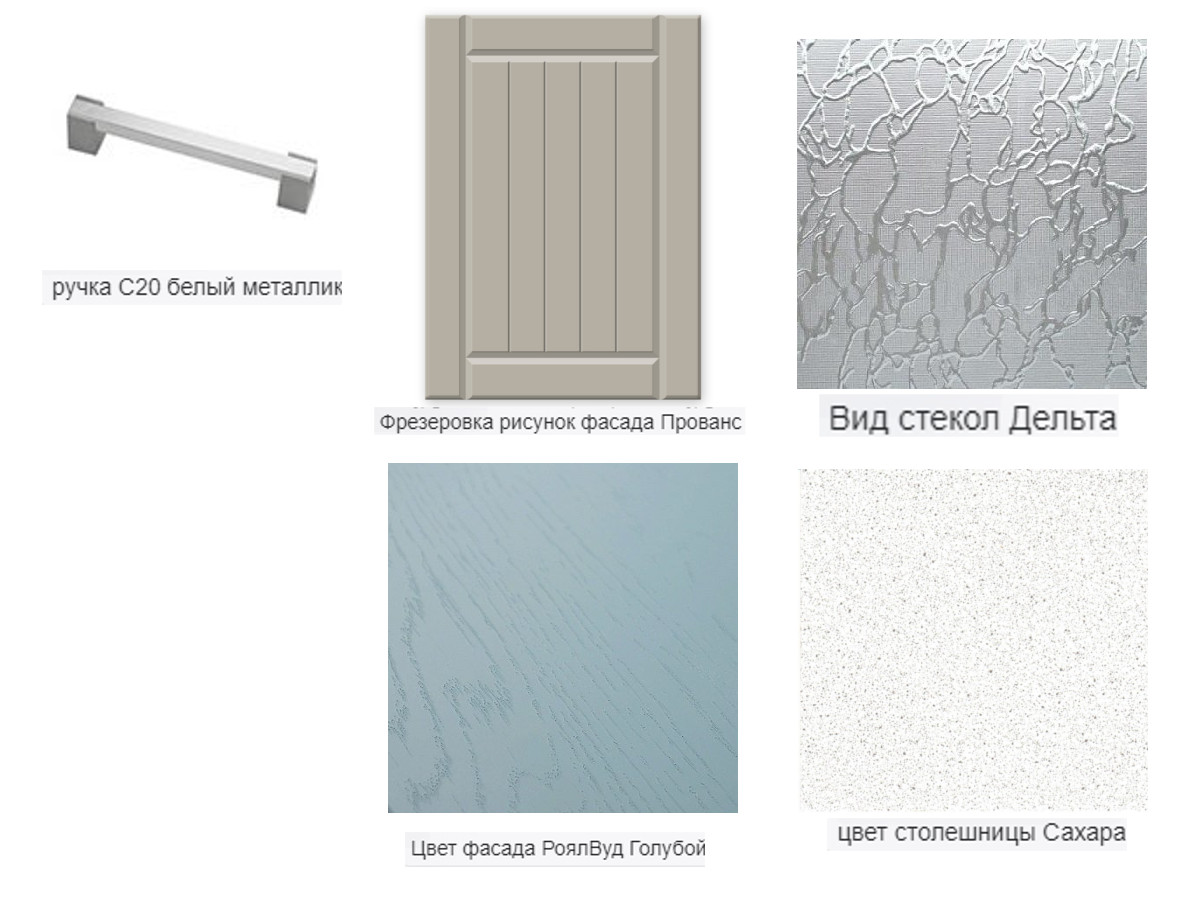 Кухонная мойка, стеновая панель, посудосушитель, планки для столешницы в комплект не входят.