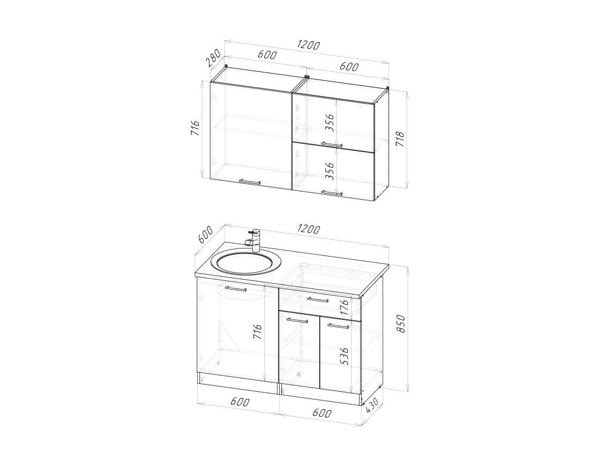 Мойка, смеситель, стеновая панель и посудосушитель в комплект гарнитура не входят.