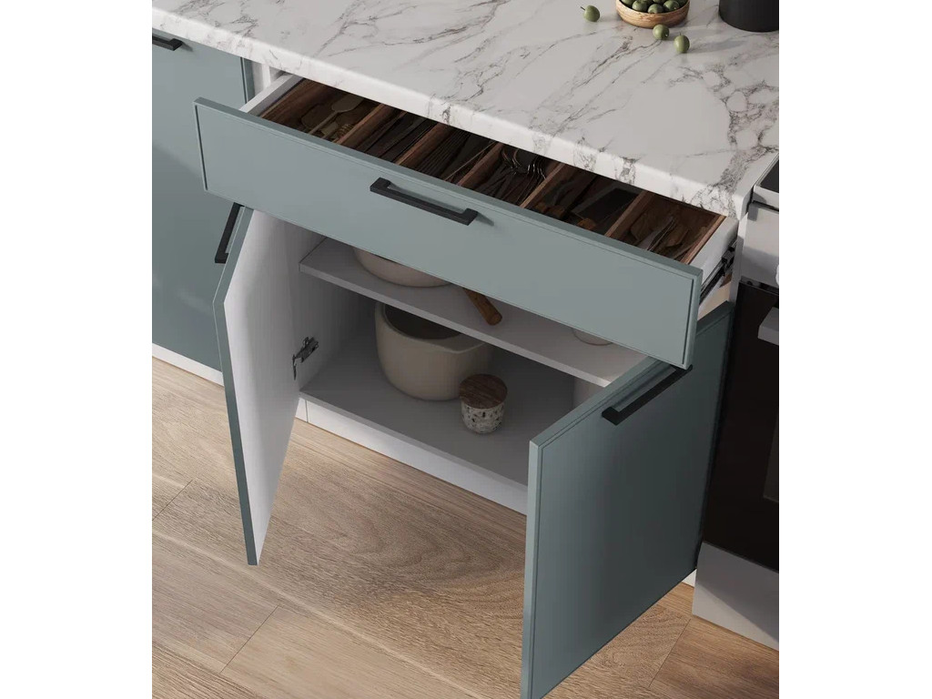 - Верхние Фасады Белый Софт / Нижние фасады Бирюзовая мята
