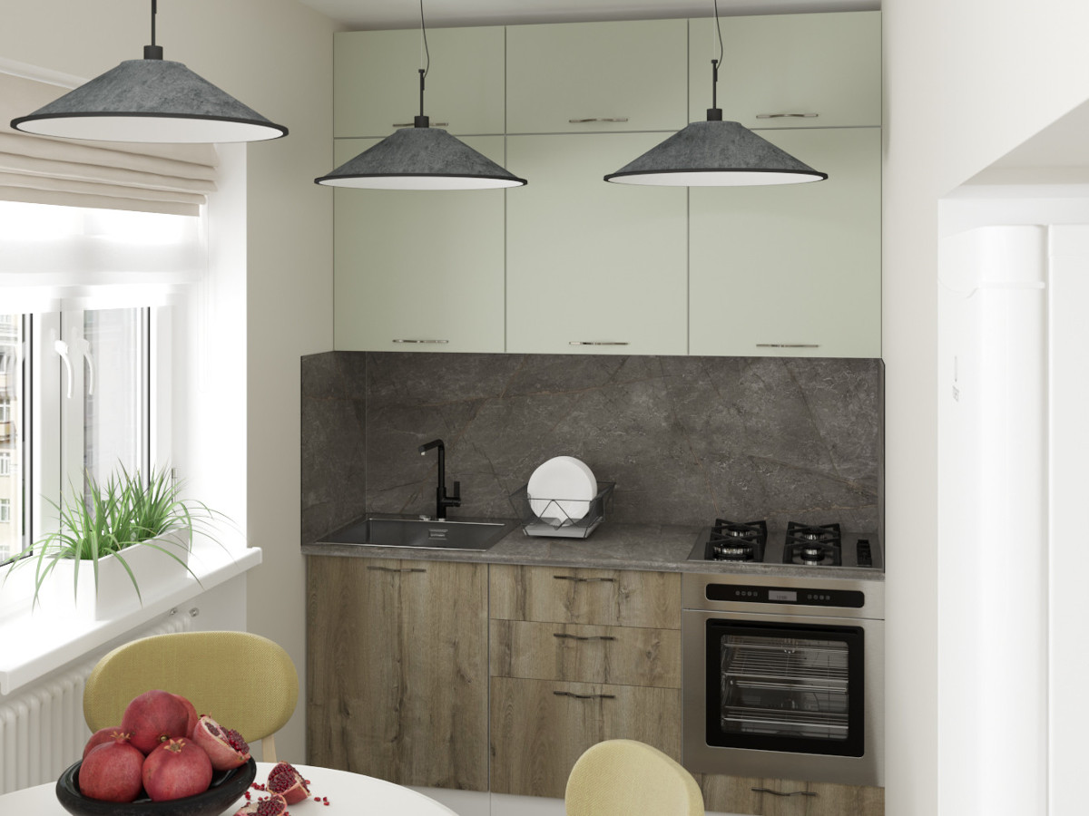 Мойка, смеситель, стеновая панель и посудосушитель в комплект гарнитура не входят.