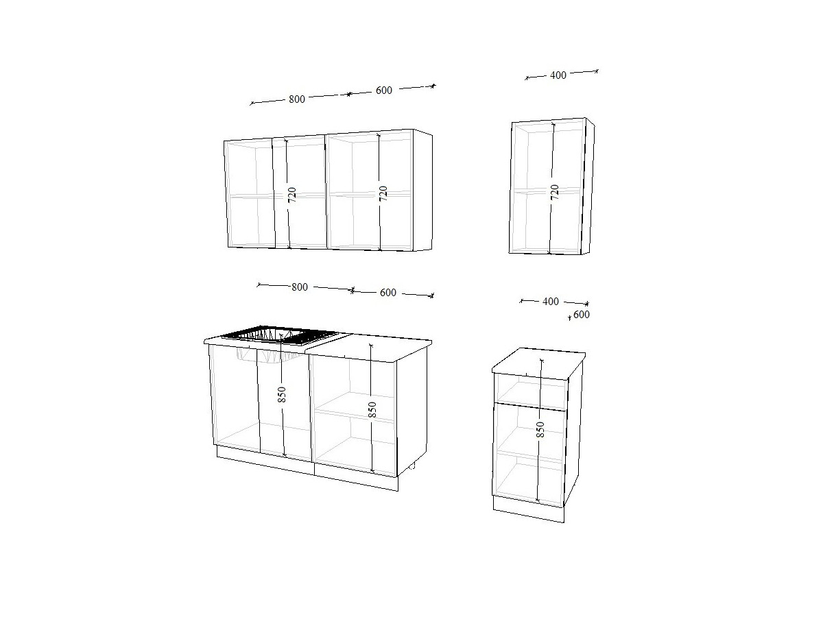 Кухонная мойка, стеновая панель, посудосушитель, планки для столешницы в комплект не входят.